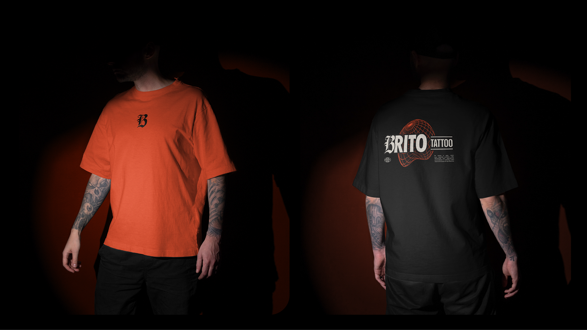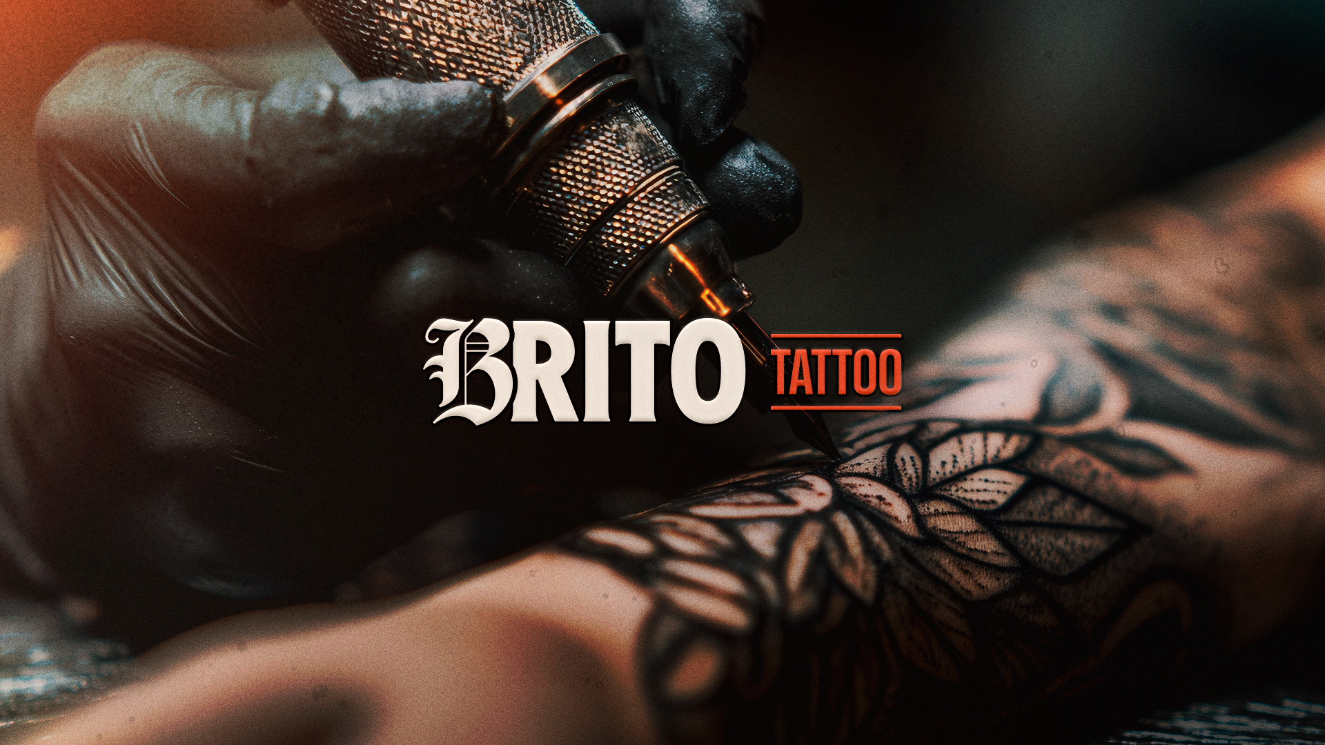 The Brito Tattoo logotype is born from the contrast between two essential poles of the brand: the artistic and the rational, the rebellious gesture and the firm structure, raw expression and technical mastery.