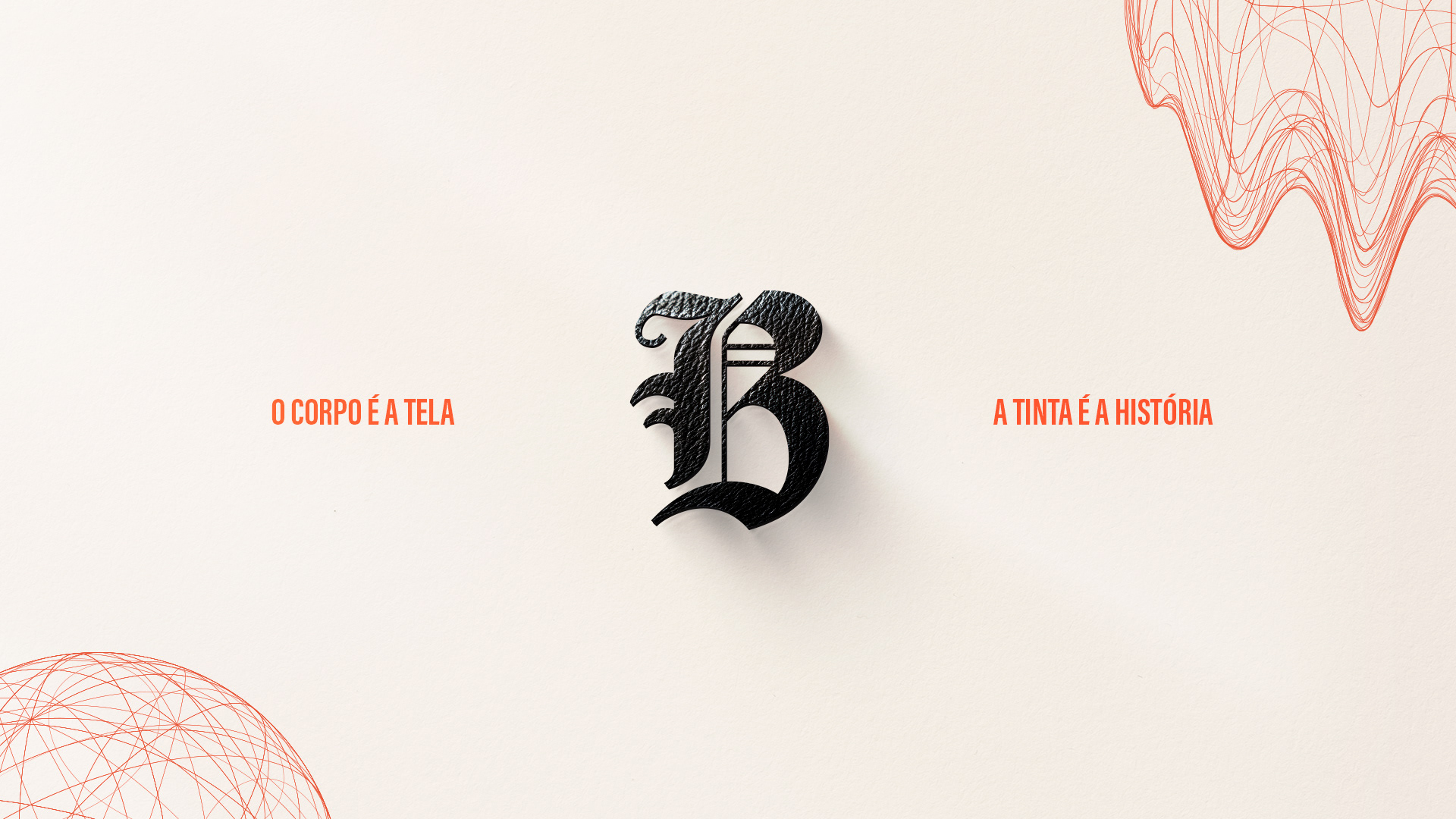 A letra “B” foi criada como símbolo da marca, utilizando como base o estilo Blackletter, carregado de força estética e referência à cultura da tatuagem, do rock, do underground. Representa a arte viva, indomada, visceral, o traço que nasce da alma. Um ícone de ruptura.